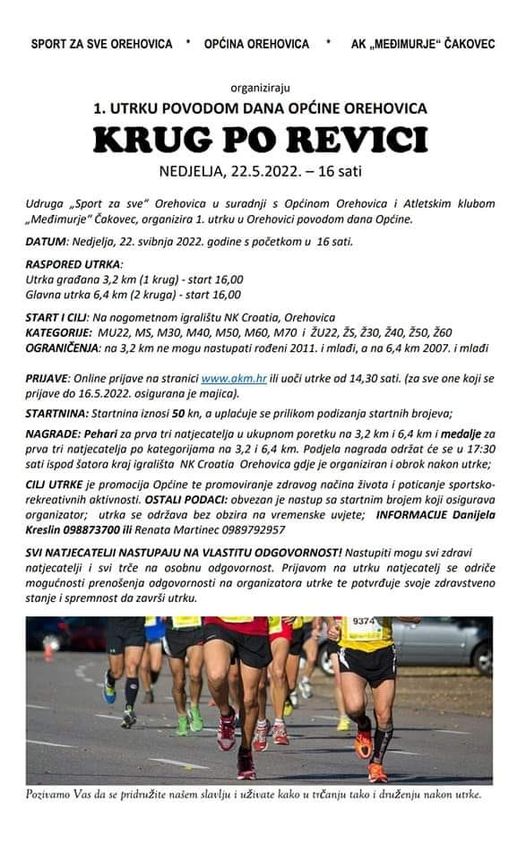 Općina Orehovica sa udrugom “Sport za sve” Orehovica organiziraju, po prvi puta, utrku povodom Dana općine pod nazivom KRUG PO REVICI.